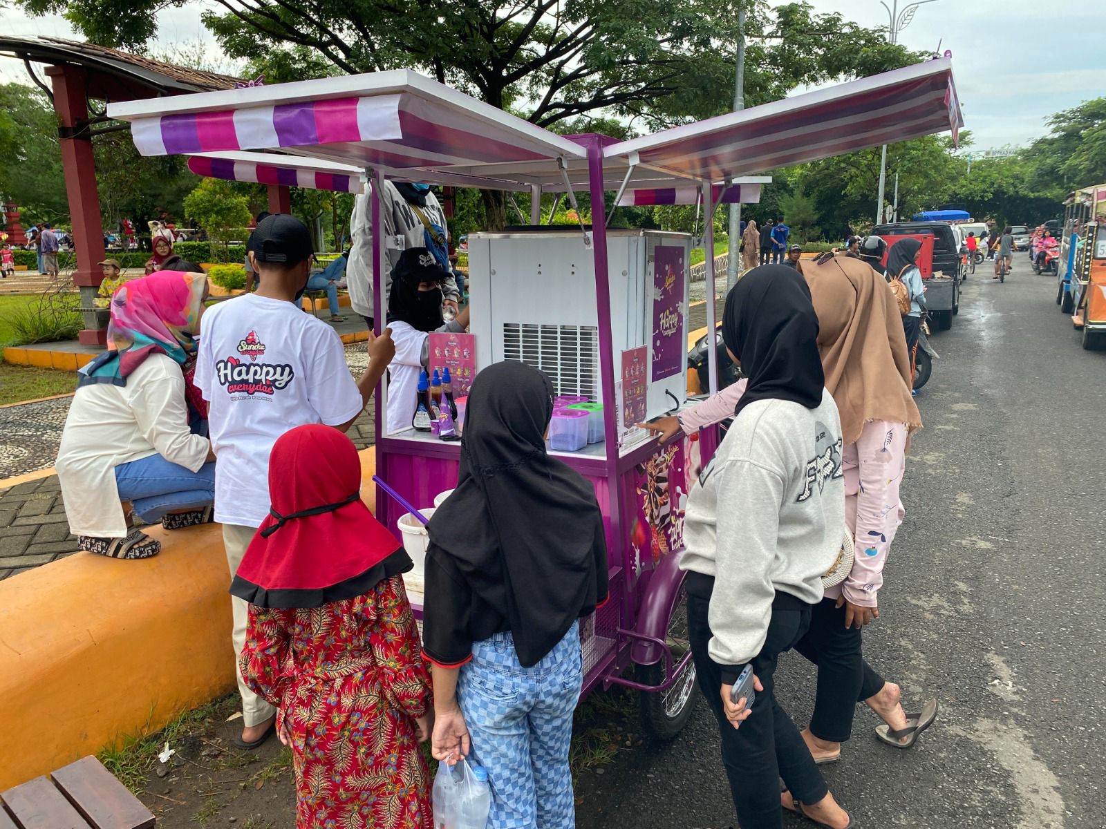 - Offline: Jual di tempat strategis seperti depan sekolah, taman kota, event komunitas, atau pasar malam. Gunakan booth kecil atau gerobak es krim yang menarik dan bersih.