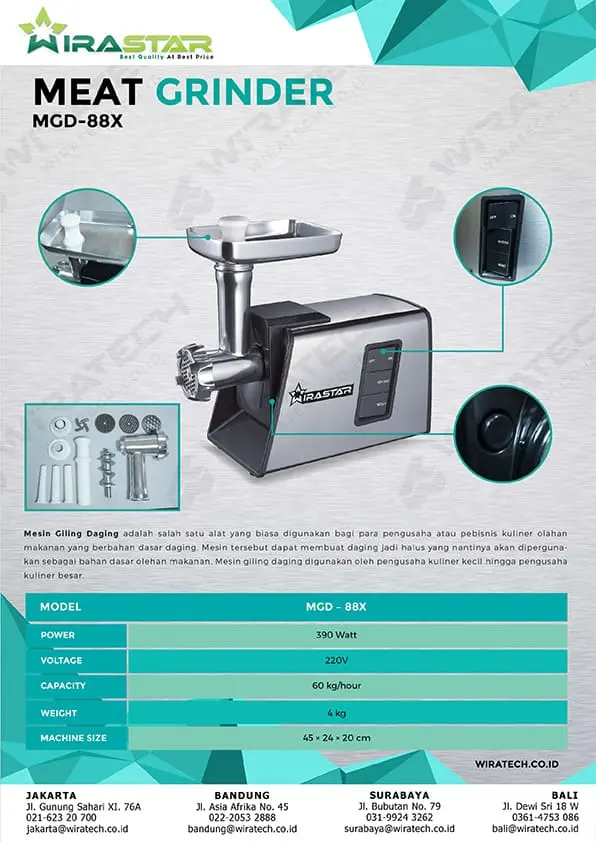 Umumnya daging giling yang dijual pada pasaran telah dicampur dengan banyak sekali bahan. jua sudah melewati banyak sekali macam proses yang membentuk tekstur asal daging tidak terlalu nampak segar.Bila Anda mempunyai Mesin Giling sendiri dirumah maka Anda bisa menerima akibat gilingan yang benar-sahih masih segar. Tanpa ada adonan bahan-bahan yg mungkin berbahaya bagi kesehatan Anda dan keluarga.