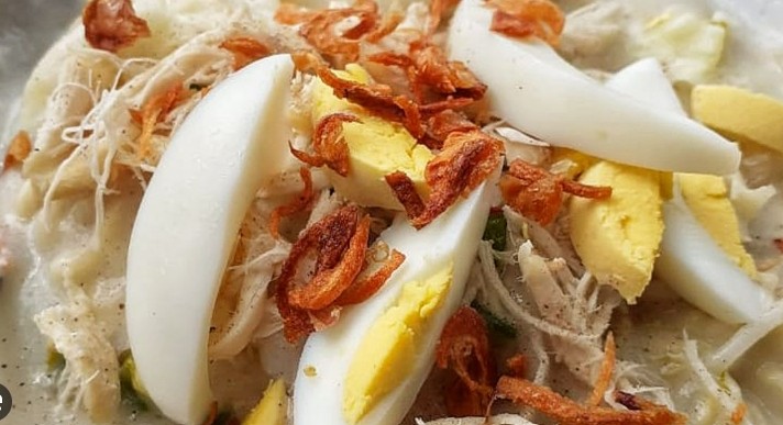 Dibuat dari santan, kaldu ayam, dan larutan tepung. Inilah yang memberi tekstur creamy namun tetap gurih.