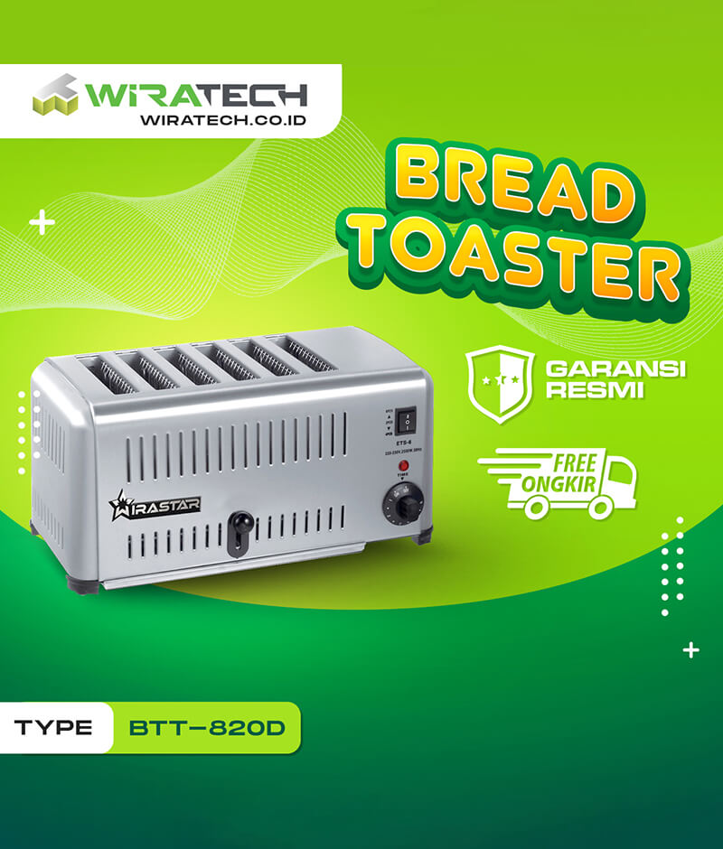 Bread Toaster BTT-820D adalah alat pemanggang roti yang mempunyai desain kokoh, dengan spesifikasi modern terbaru. Sangat cocok di gunakan untuk kebutuhan bisnis Restoran,Cafe dan Hotel. Hubungi kami sekarang untuk mendapatkan mesin ini sekarang juga