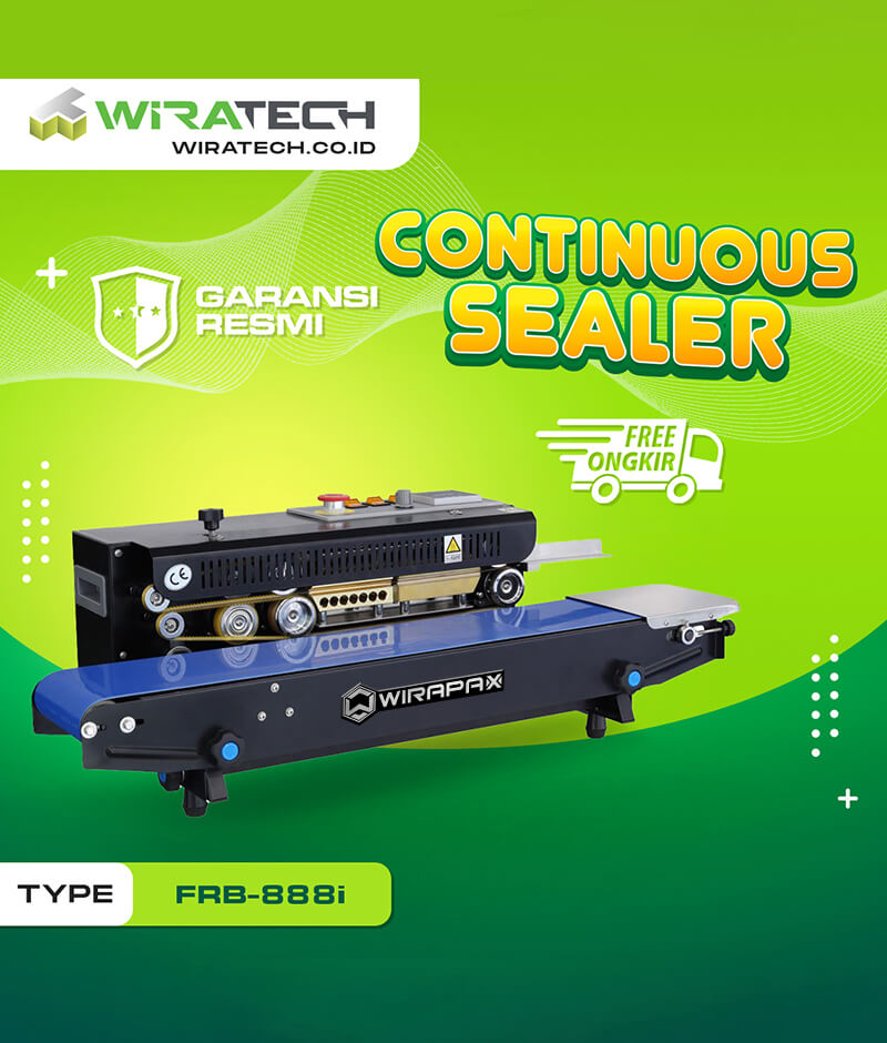 Continuous Sealer merupakan Mesin Kemasan yang tidak lagi asing bagi yang memiliki home industri atau bisnis rumahan. Alat tersebut melakukan proses pembungkusan yang berukuran kecil dengan mengunakan sistem pengendali suhu. Bisa Bayar Cicilan 0%. Wiratech merupakan distributor mesin kemasan di Indonesia. Segera hubungi Customer Service kami untuk dapatkan tipe mesin yang anda butuhkan.